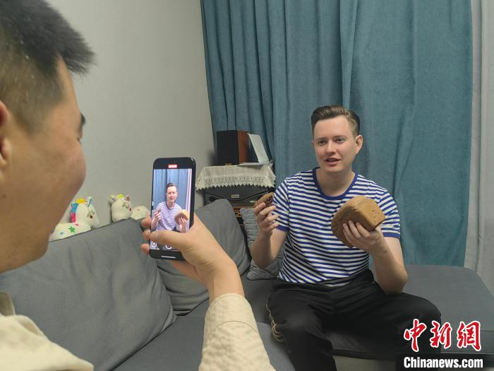 窗外的松花江静静流淌,安特的桌子上摆着两样东西:硬实的大列巴面包和软糯的粽子。这位俄罗斯青年操着一口地道的东北话,对着镜头,先是用大列巴“咚咚”地敲了敲桌面,又小心翼翼地捏了捏粽子。“老铁们,咱们两个国家的食物,在硬度上就不一样。”