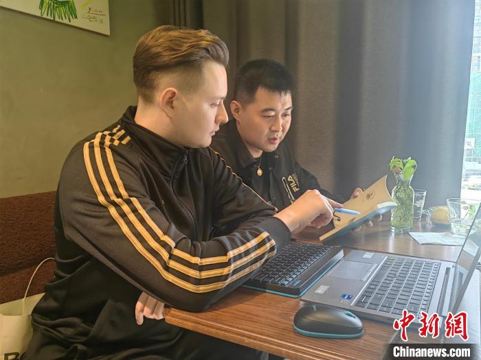 5月25日,吉林省吉林市,安特(右一)与合作伙伴拍摄短视频。中新社记者 石洪宇 摄